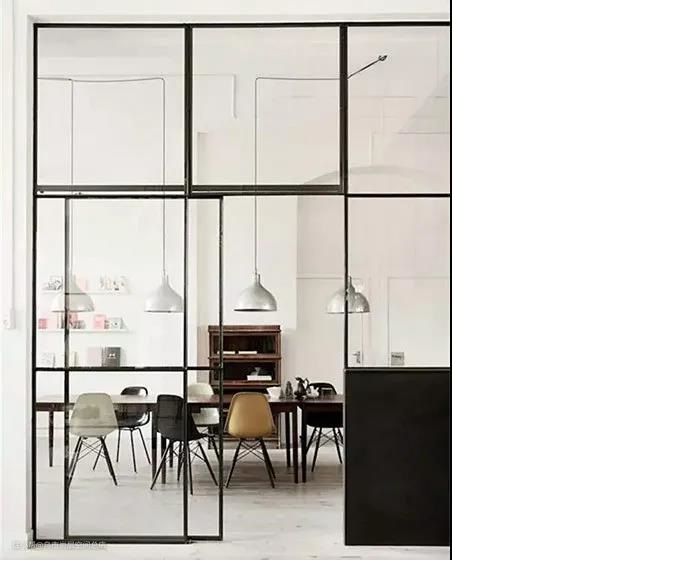 黑框的宽度和玻璃的种类都是可以定制的,市面上也出现了很多不同风格的黑框玻璃门,小美觉得都很好看。