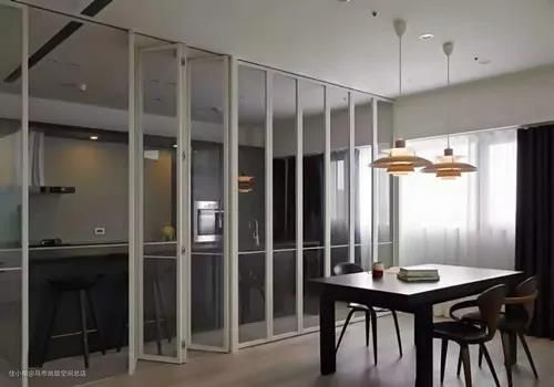 对于厨房、客厅阳台等地方,我们用推拉门的,完全可以换成折叠门,更省空间的多。既可以达到开放式厨房的美观效果,需要的时候也可以阻挡油烟。
