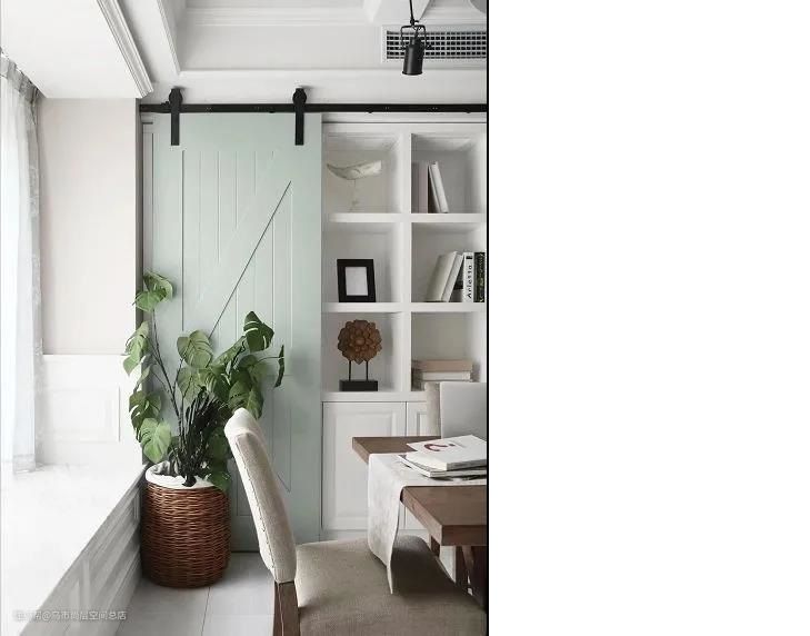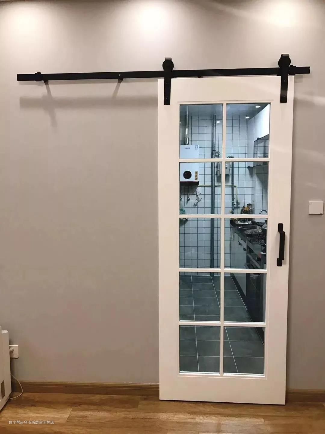 3、适合小空间。谷仓门紧贴墙面,开启的时候不占空间,比较合适小户型业主,尤其适合厨房、衣帽间、书房等小面积区域。