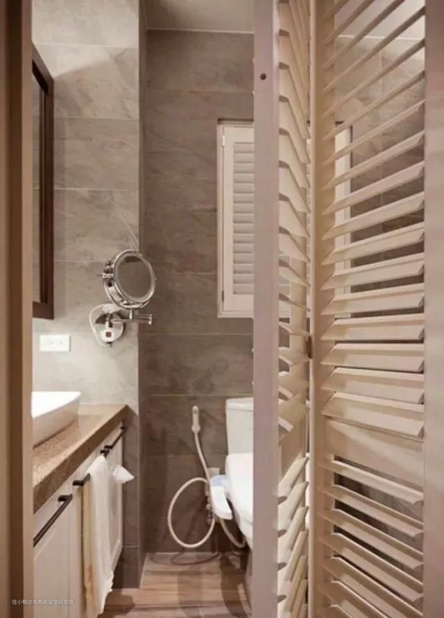 像是客厅阳台之间,装推拉门可能会有一半的空间是固定的,换成折叠门就没有这个顾虑啦,所有空间都可以用上。卫生间里的百叶折叠门,也是一种非常棒的设计,装饰效果很强,透气性也好,看起来就非常美观。