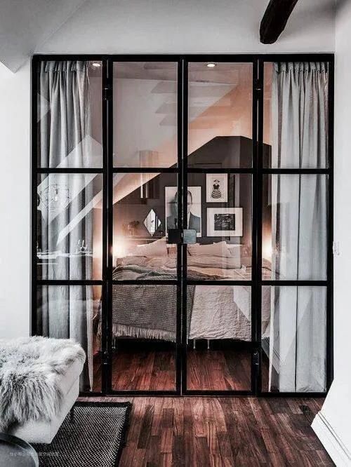 细细的黑框,再配上通透的玻璃,整个门都显得十分轻盈,能将家居空间称得十分高级,自带一种精致的感觉,简直是家装领域的百搭设计!