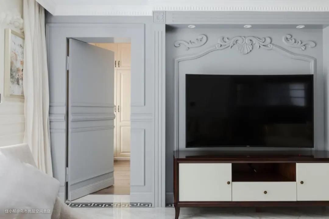隐形门合适装在哪?可以将面朝客厅的门设计成为隐形门,不仅能够让客厅的整体造型更加统一,在视觉上也能显得客厅非常敞亮。