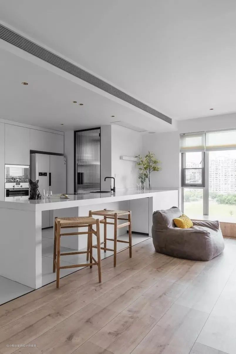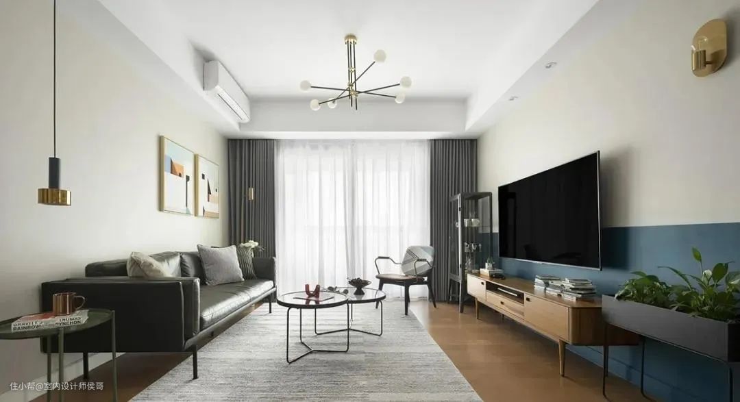 除了墙面与木地板的颜色搭配,家具作为占用大面积墙面的存在,颜色建议比地板略浅,否则有失和谐,显得不稳定;若是有大面积的定制柜体,柜体要与地板颜色统一色系,保持视觉的延伸,否则反差太大,会让空间分割太细,显得不和谐。