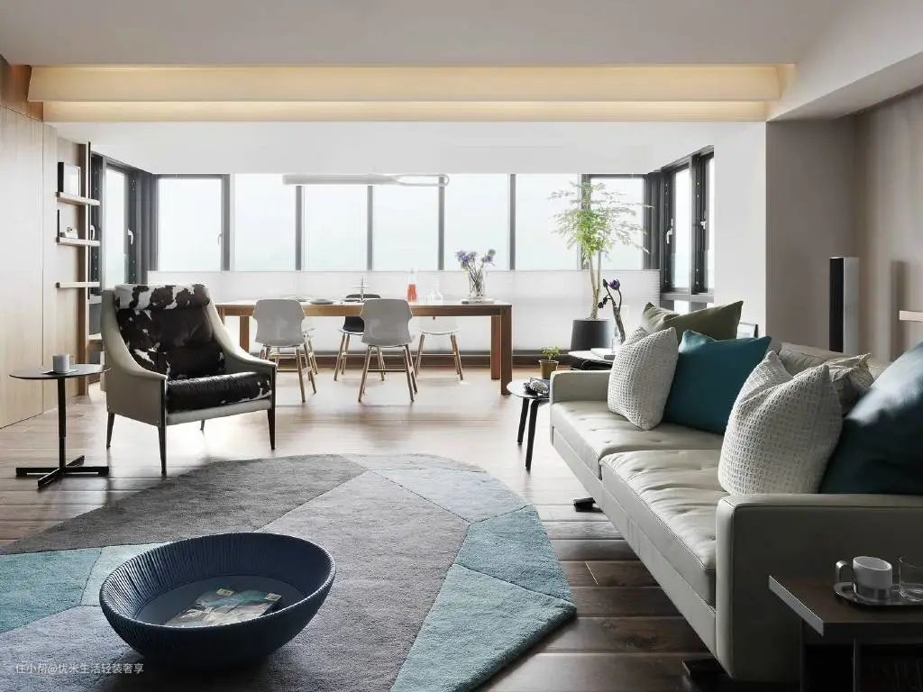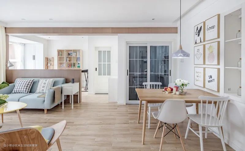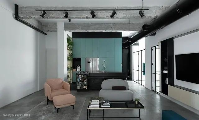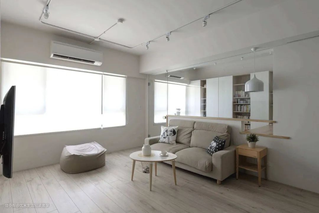 根据横梁的位置,可以将其作为两个空间的分界线,用相应的布局设计打造成不同功能的区域。