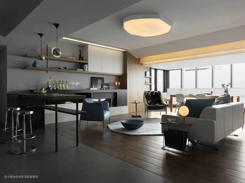 吊平顶设计简单,没有太多复杂的造型,搭配无主灯设计能够提升家里的设计感,还能保证光线分布均匀。