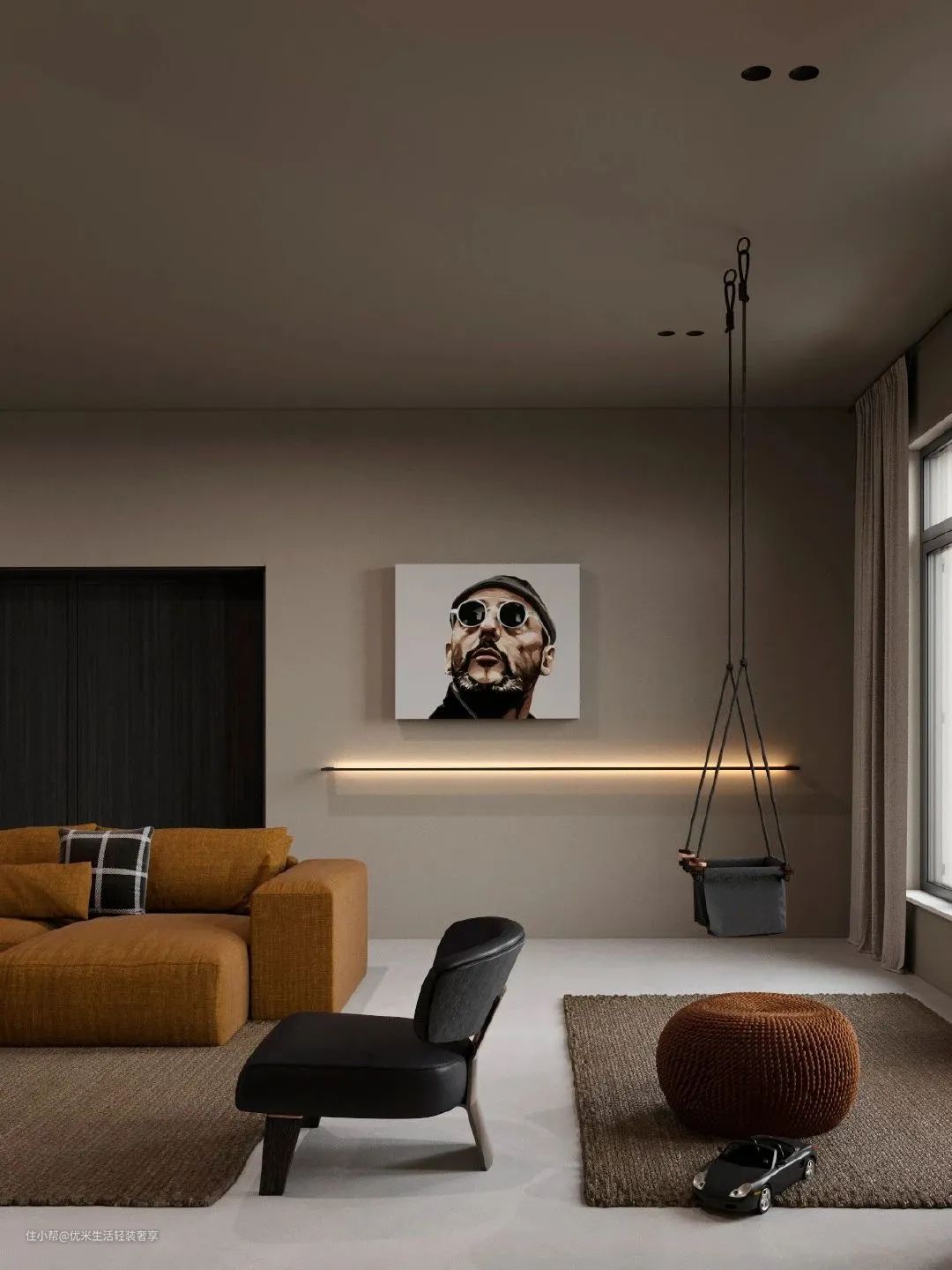 想要更加个性化的效果,胆子够大的朋友,不妨试试将横梁直接裸露在外,不做任何遮挡,就是要这种原始的水泥质感,非常适合简约风和工业风的设计。