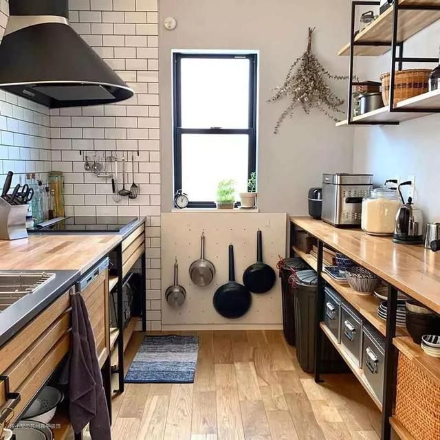 日本人的橱柜喜欢采用二字型设计,一边是烹饪区、备菜区、洗菜区。另外一边是收纳柜,这样不仅动线流畅,而且东西收纳摆放也整洁干净。