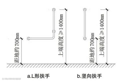 L形及竖向扶手的安装高度要求如下: