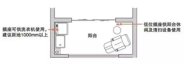 考虑阳台可能放置洗衣机、电动健身器材等,应预留1-2个电源插座。