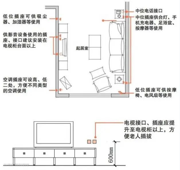 3、客厅插座及弱电接口布置要点