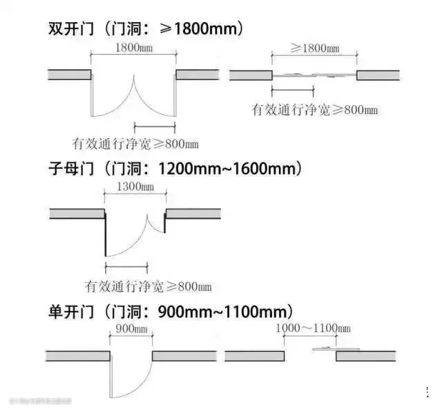 因此,针对不同的门种,应预留的门洞宽度如下: