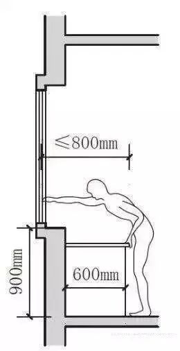 人能方便开启窗户的最大窗户深度为800mm,因此,当凸窗的深度大于800mm,或者窗户深度和窗前家具宽度之和大于800mm时,会导致窗户开启困难。