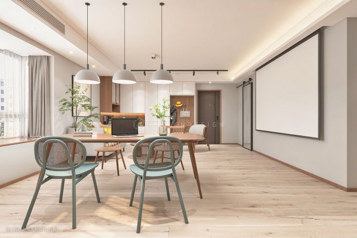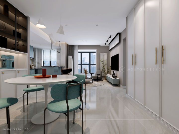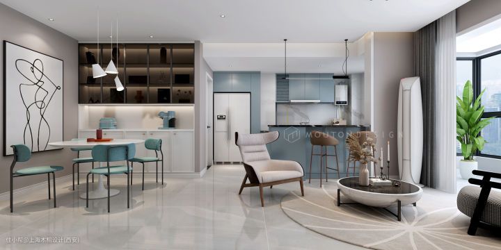 厨房-餐厅-客厅整体就是一个开放的互动空间,一人居自在随心,朋友到访玩的高兴。
