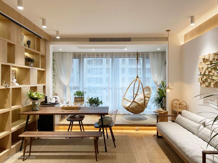 交流、储物、娱乐、阅读、工作等功能一一实现,二人世界的家,更是为习惯和爱好创造一个更加舒适的空间。
