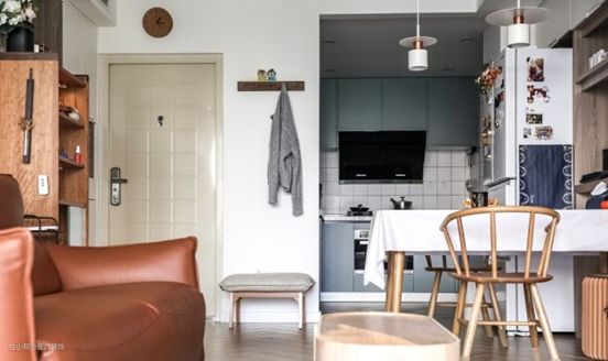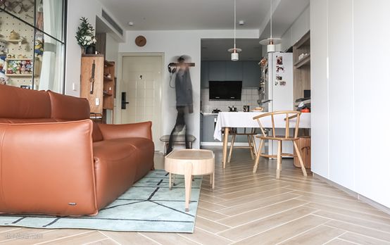 地面通体用了【人字拼】的木纹砖,让空间的视觉有延伸感,适合小户型。