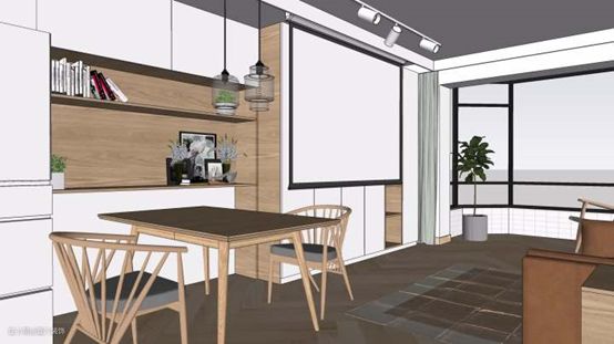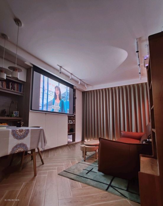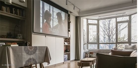 另外,两位业主用投影仪取代了电视,不看电视的电视投影仪就收起来,完全不占用空间。