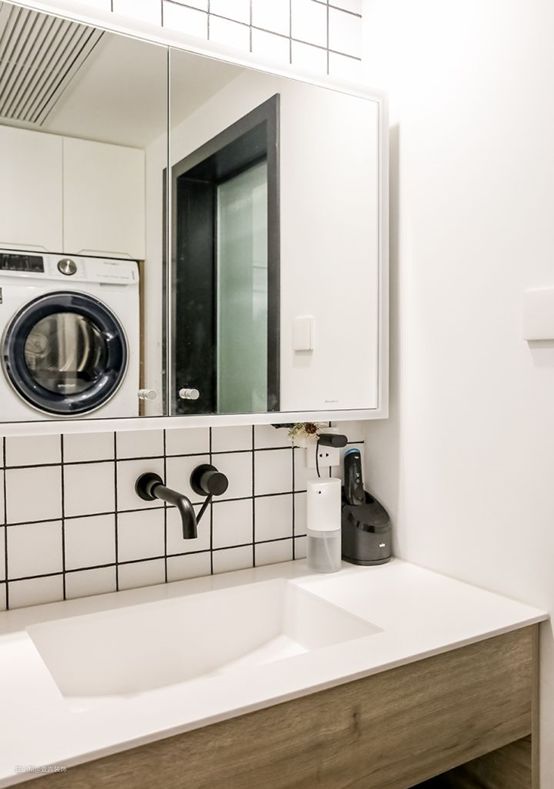 运用黑色地砖+白色美缝,白色墙砖+黑色美缝这样的对比色,简洁大方,砖虽然普通,可是也能通过一些方式让它变得更好看、更有设计感。