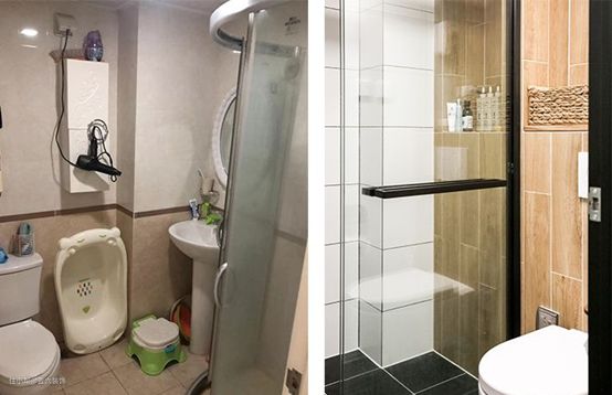 第二是卫生间的改造,地砖和墙砖的黑白搭配,简洁大方,很耐看。