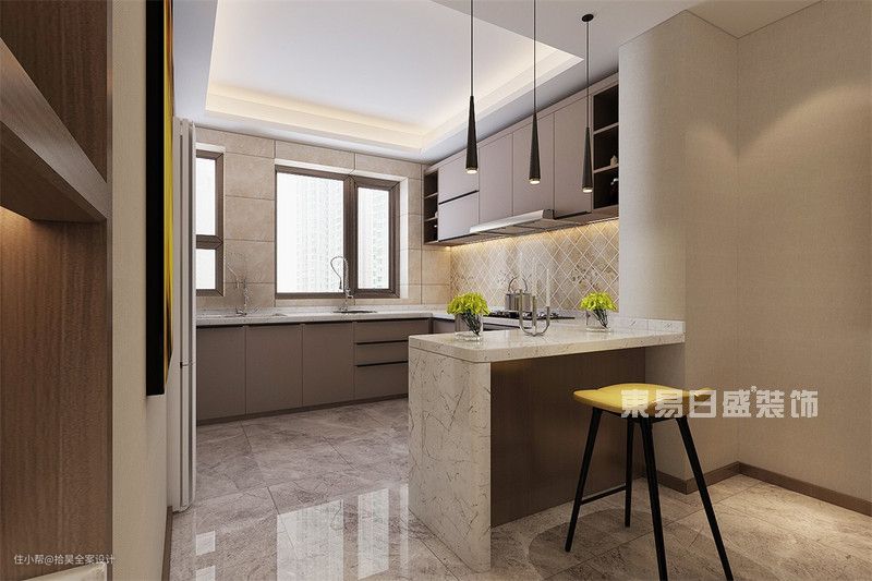 (4)位置安排。值得注意的还有开放式厨房吧台的位置设计,根据实际情况的不同,吧台的位置设计也是有些许差距的,而且根据吧台的功能,会影响到电路和排水的设计,如果需要在吧台上使用耗电量较高的电器,像是电磁炉之类,就需要单独设置个回路,以免电路跳闸。