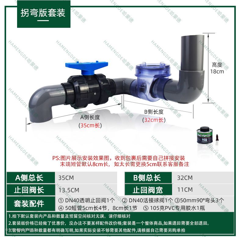 2. 根据家里的实际安装环境和尺寸选择和是的止回阀套装和所需要的管件,可以把实际的安装环境拍给客服指导测量尺寸购买。安装空间不够的可以选择u型版或者是拐弯版来改变一下安装的方向。