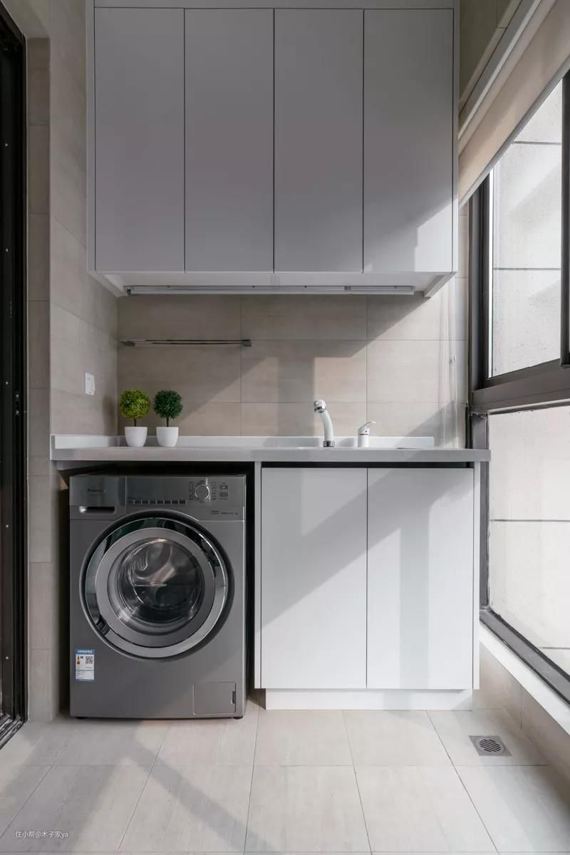 如果你家有一个大阳台,可以考虑把阳台其中一侧作为家政间,方便晾晒,烘干机洗衣机,清洁工具等都可以在这里完成。