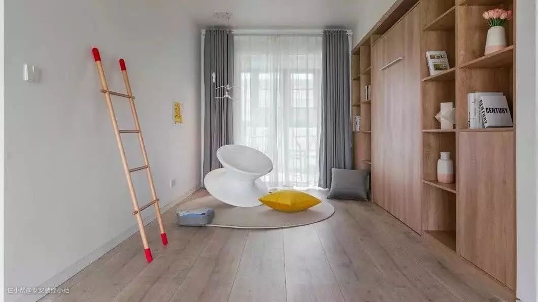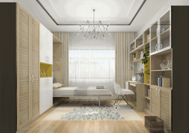 隐藏式床很适合儿童房,白天把床收起来能为孩子提供更多活动空间。