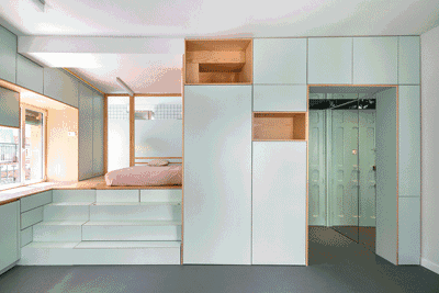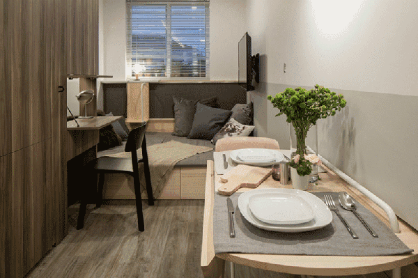 隐藏式床和桌子一样,可推拉、可翻转,在任何你需要的时刻,它都能出现。