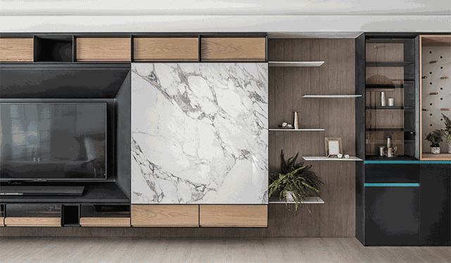 收起来后空间就比较简洁,既能保证该有的功能,又不占地方。当然,隐藏式电视不止这一种设计方法,还有多种可以选择。
