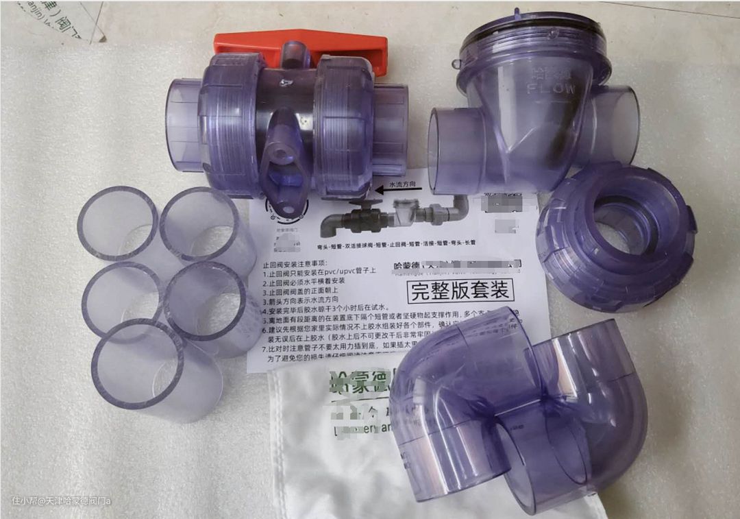3.拼接止回阀:按照哈蒙德安装图纸或者是安装视频的指导把止回阀套装先不涂胶水拼接一遍,拿到橱柜台盆下水比对一下,拼接止回阀是注意止回阀阀体上箭头的方向 ,箭头的方向代表水流的方向,有阀盖的一面朝上