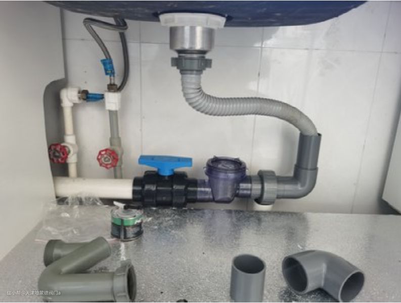 2. 安装止回阀 止回阀原理:止回阀启闭件靠介质流动和力量自行开闭或关闭,以防止介质倒流的阀门叫止回阀。止回阀属于自动阀类,主要用于介质单项流动的管道上,只允许介质向一个方向流动,以防止发生事故。故又称单向阀,止逆阀。管道反水阀门自动关闭起到止回效果,从而解决下水道反水问题。 安装活接 活接的作用:厨房生活杂质比较多,容易堵塞管道,有活接如果发生堵塞您可以拆下活接清理止回阀,方便后期维护。活接建议安装两个,两边才能都拧转下来清理,如果有活接球阀只要一个,还有一种情况止回阀安装在末端只需要一个活接。根据实际安装需要灵活变通。