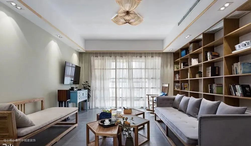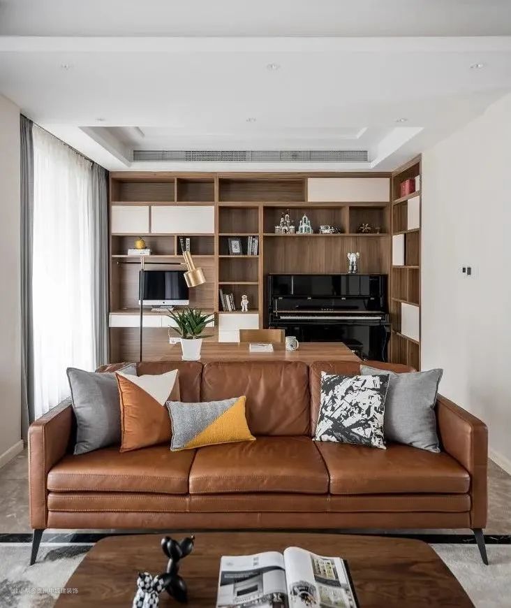 沙发往前挪10~20cm,后面可以做个书柜,扭头就能拿到书,太适合各位书虫啦。书柜作为沙发墙,也非常有装饰感。