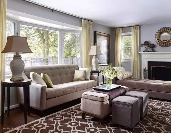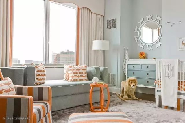 点缀家具指的是:抱枕、台灯、挂画等小物件。窗帘可以跟这些小物件同色,互相搭配。