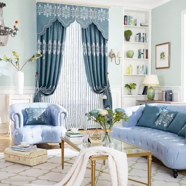 因为遮光性和隔音性比较强,很多时候客厅和卧室都会选择装双层窗帘。在选择双层窗帘花色时,最好一层是白色,另一层颜色跟主色调一致。