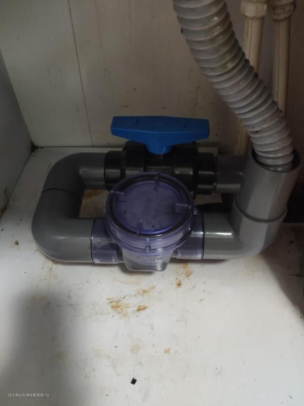 2.(防止二楼厨房反水我们必须要自己想办法),水平安装(横着)安装就可以,因为止回阀是翻板式的,咱们家用管道压力小竖装起不到什么防反水效果所以要横着安装。先把止回阀套装先不上胶水组装好,注意止回阀有箭头的一面朝上,箭头指向水流方向
