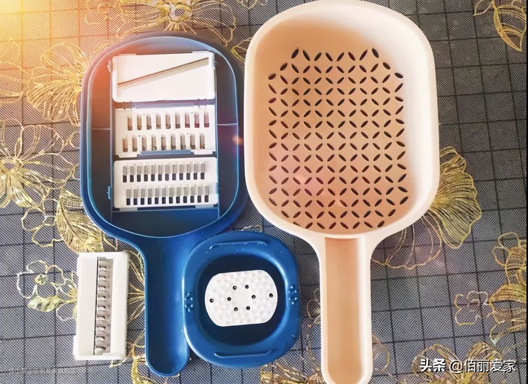 不仅包含各种切丝刀片,而且还有切丝护手器+沥水篮+淘菜篮,厨房有一个它,就解决了切丝、洗菜、沥水的全部问题。