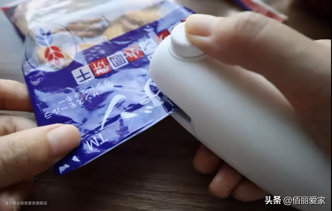 没吃完的袋装食物,丢了浪费,用家用封口器阻隔空气,轻轻一拉,就能封口。