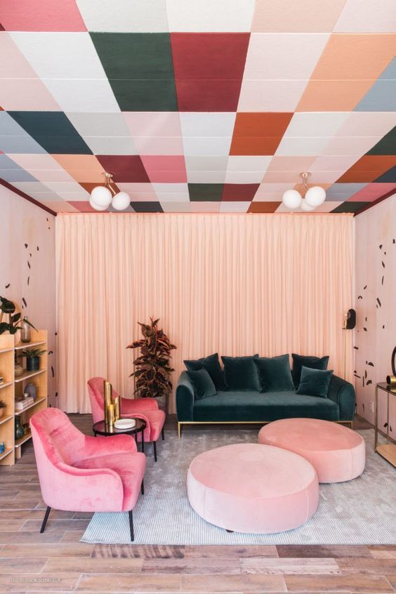 面对难看的天花板瓷砖是最难入眼的。但有许多不同的图案和颜色,你可以尝试增加一些兴趣的房间。酷色块设计在天花板上创造奇迹。