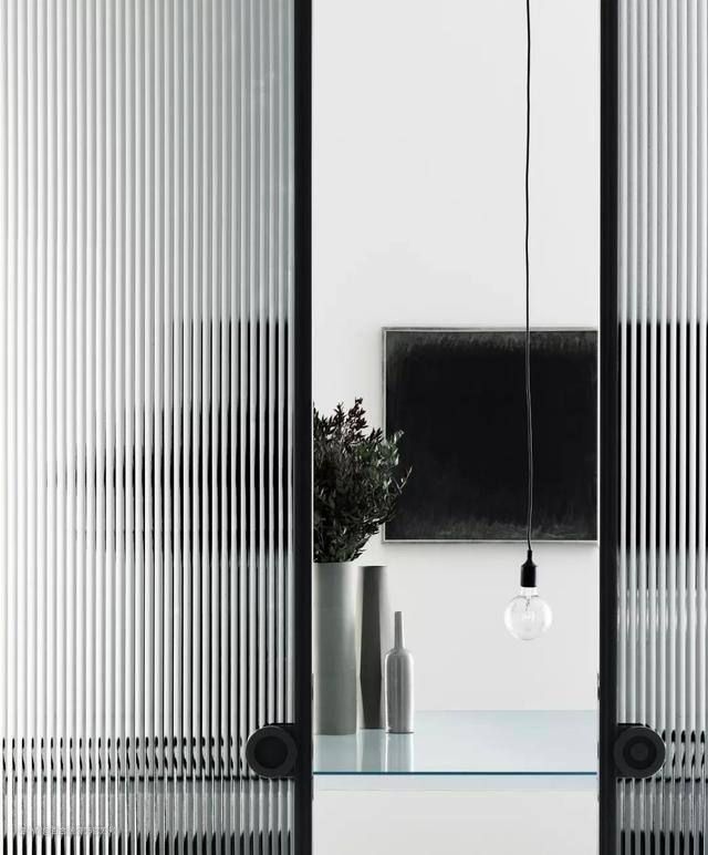 长虹玻璃,表面呈现竖条花纹,有点类似栅栏的样式,不管设计在什么地方,高级感十足,特别的惊艳。