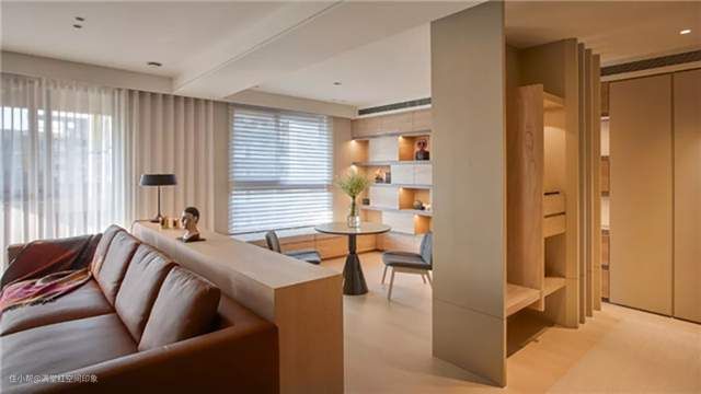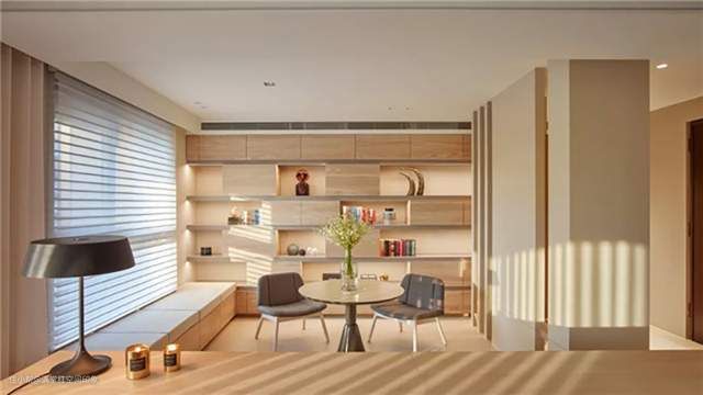 玄关背后设计出一块休闲区域,午后在阳光的沐浴下与朋友闲谈亦或是独自读书休憩,享受恬静时光。