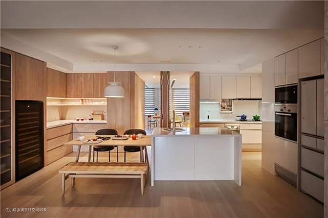 开放式餐厅厨房设计,整体简约大气,让功能性区域也能展现美的视觉体验。