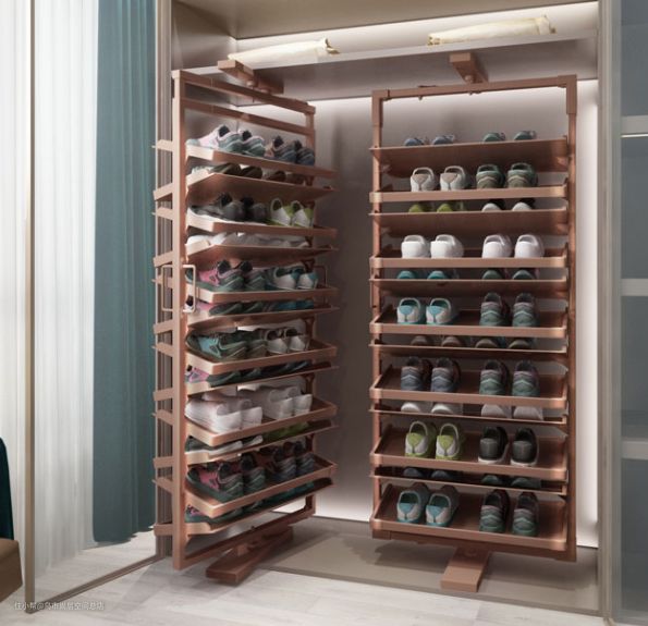 如果鞋柜太浅,可以利用伸缩杆把鞋子立起来摆放,拿取也超级方便。