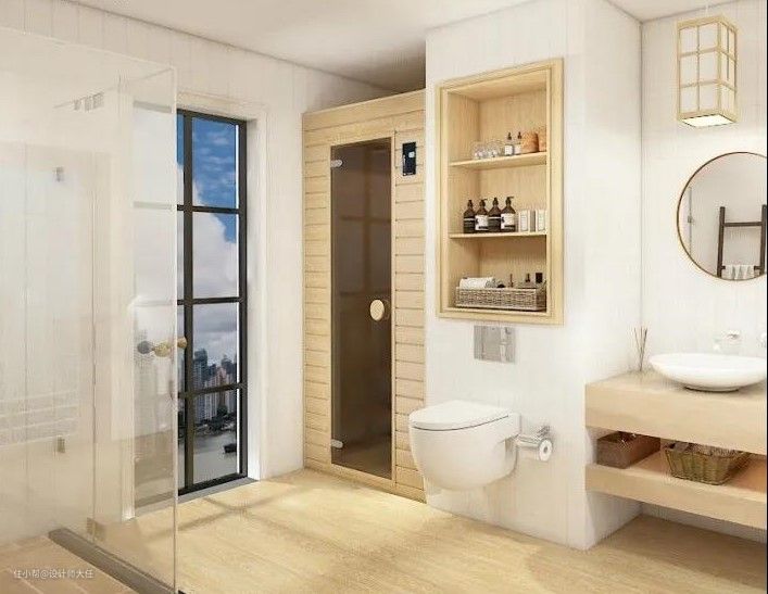 卫生间面积有限,想要更多收纳空间,不妨学学今天的方案,打造收纳壁龛,不占空间巧妙扩容。有机会的话,同样可以在家定制桑拿房。足不出户,就能享受健康理疗。