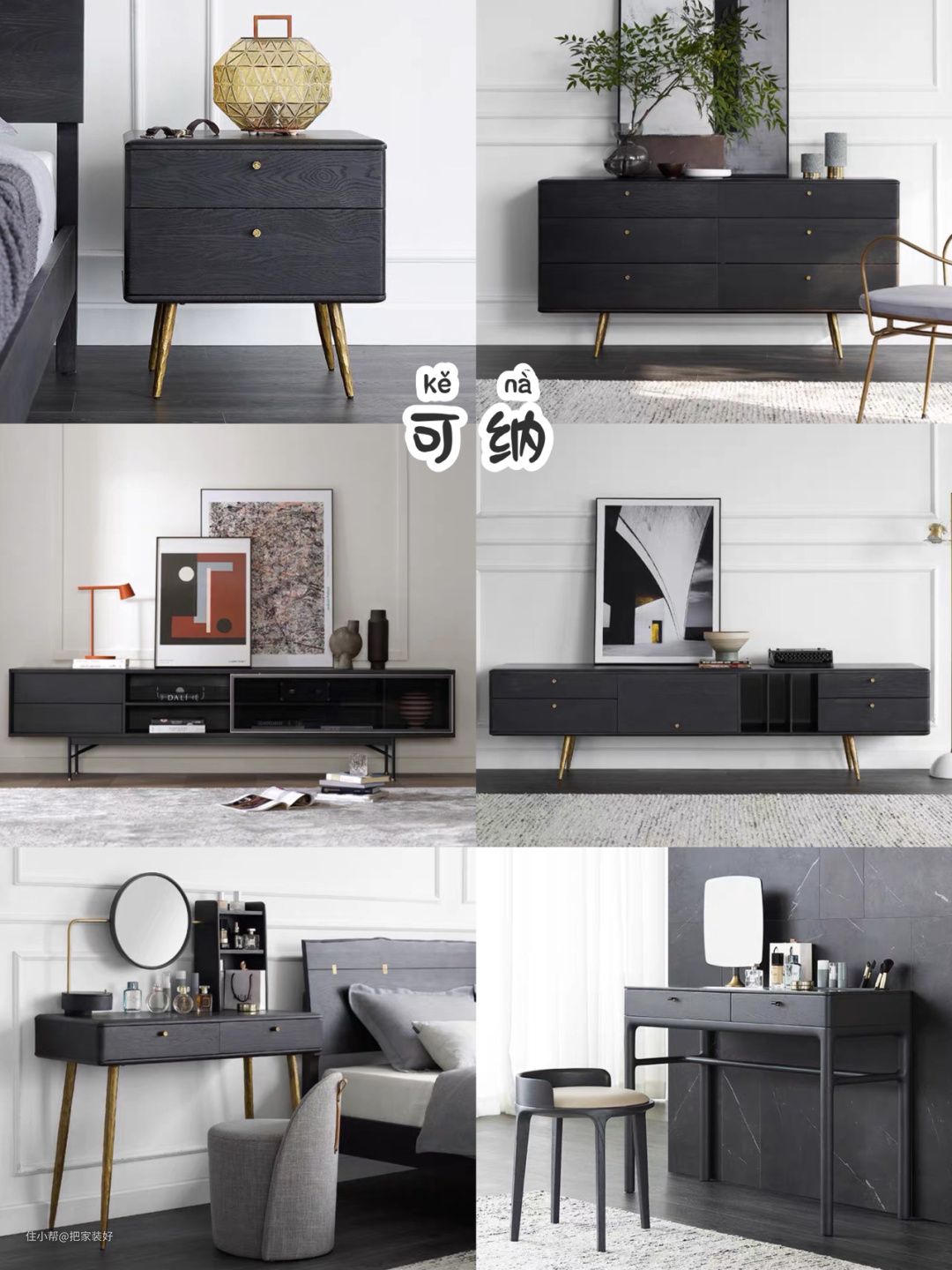 意式轻奢风和复古风的黑色橡木家具,电视柜跟梳妆台都挺好看的!
