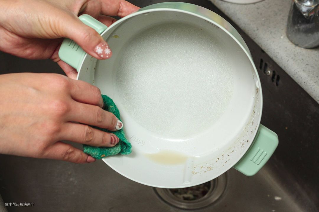 同样不沾的特性让只要上些洗洁精用洗碗巾过一遍就干净了。