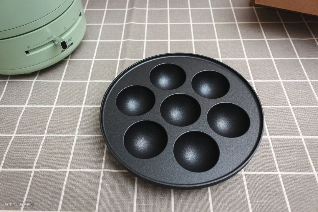 另外一个可选的配件就是这个丸子盘,同样是不沾材质。看到这个丸子盘的第一感觉这不就是街边买章鱼小丸子的造型么,这个丸子盘似乎可以给孩子做些好吃还好看的丸子。
