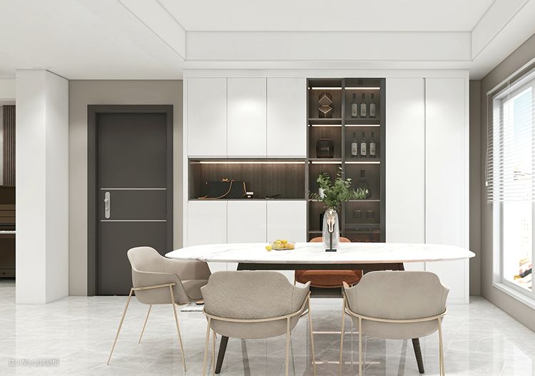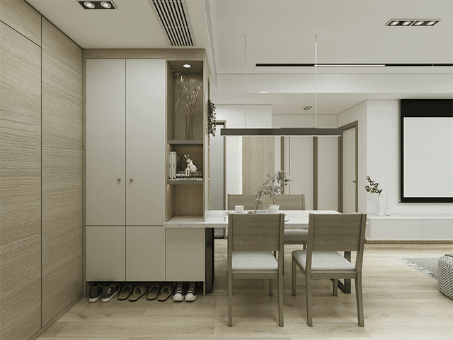 开门就是餐厅,可利用好墙面空间,打造一面完美的玄关柜。