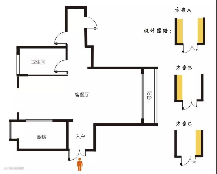 不是所有户型都能有玄关的,就算小,那也算是『幸运』的。还有很多户型入户门是直接开在墙的『中间』位置,进门就是厅,两边都『无依无靠』。