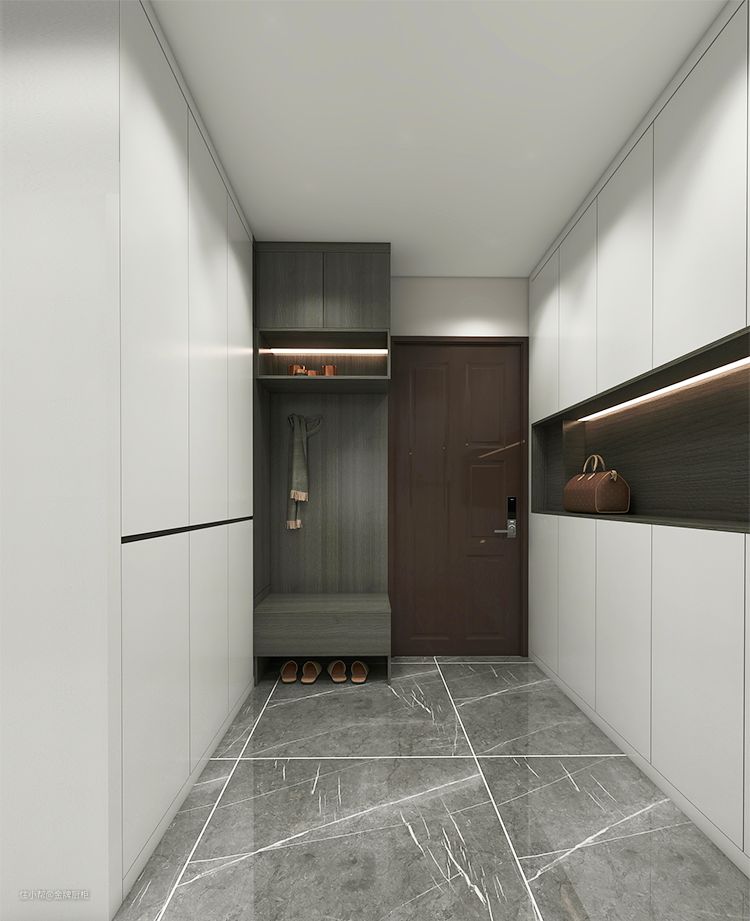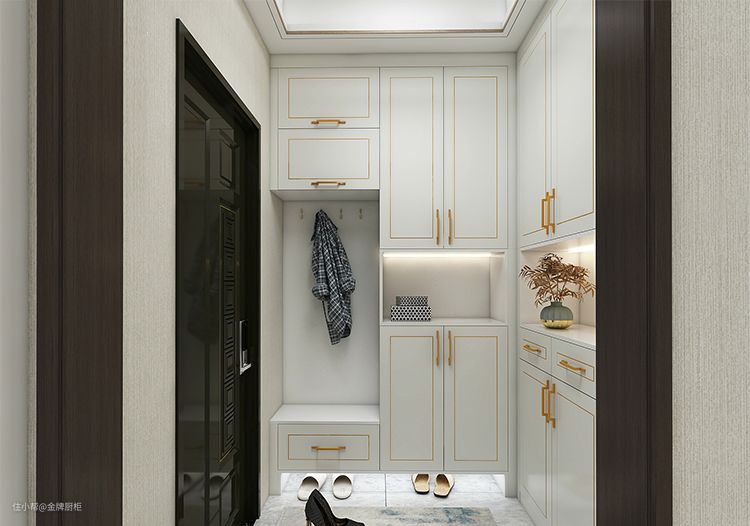 如果户型空间大的话,也可以通过改造围出一个玄关库,不仅动线合理,还能解决家里其他储物的需求。
