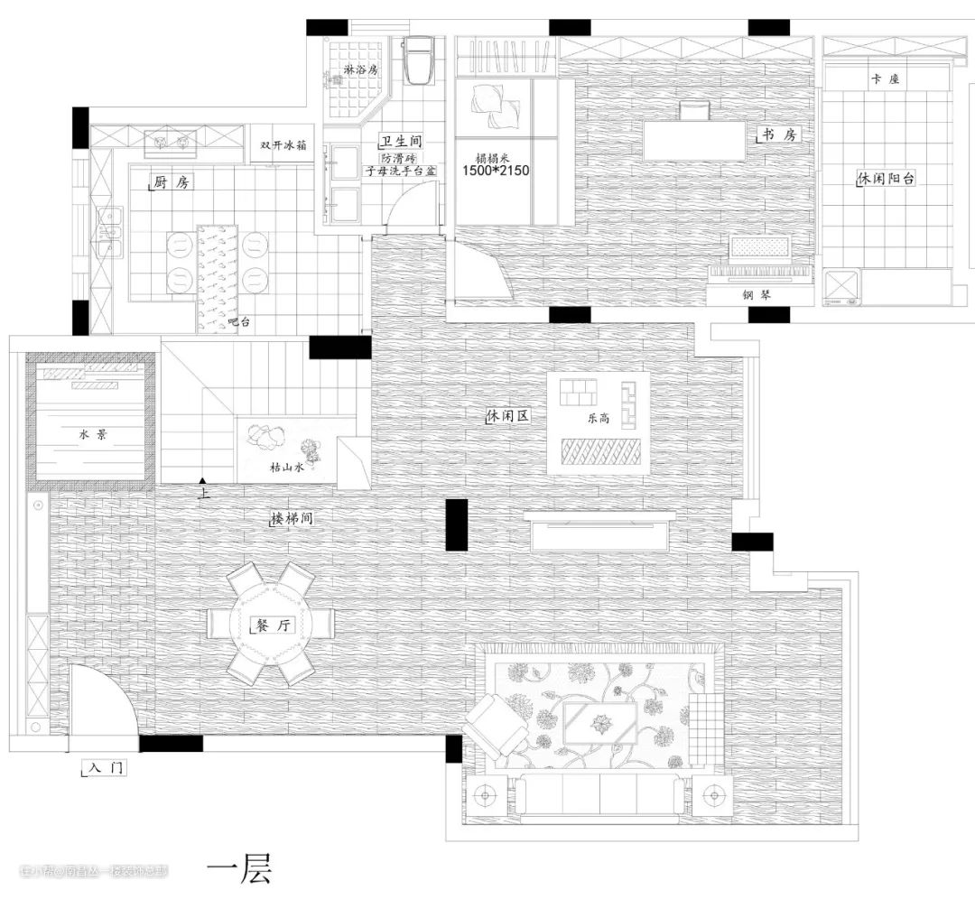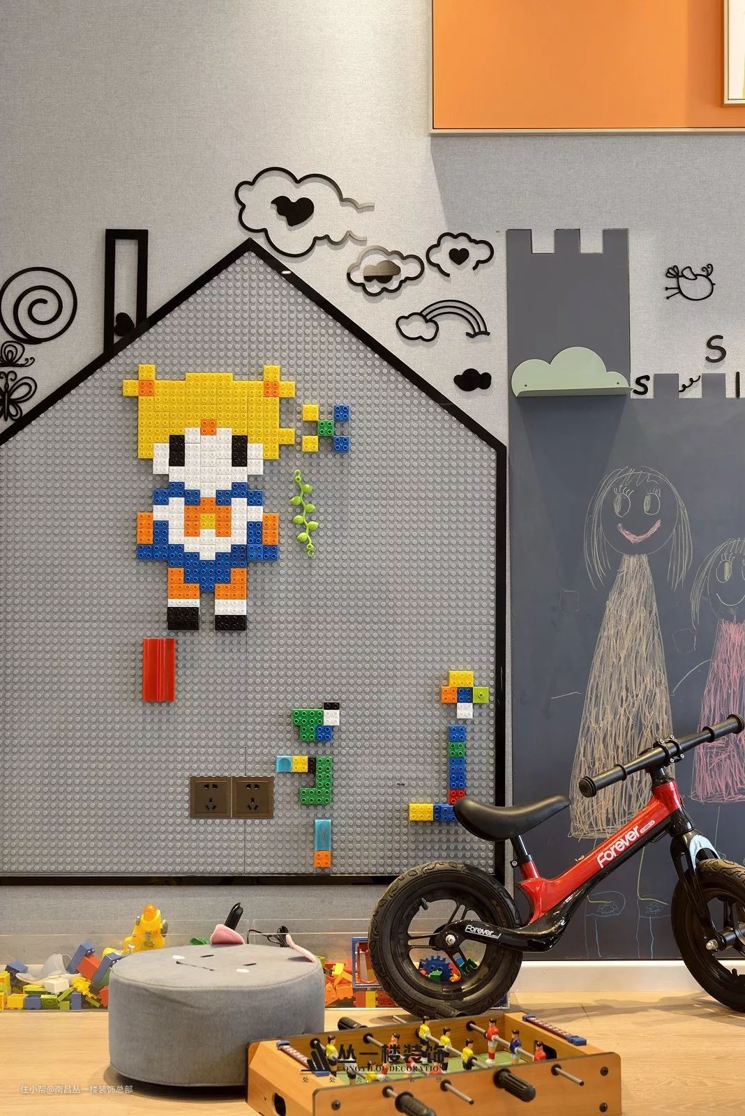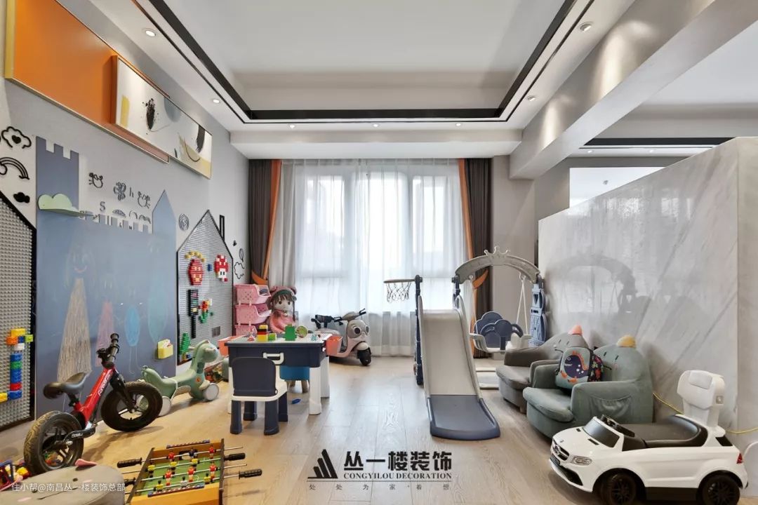 一楼预留更加开放的空间给到家庭的未来们更好的互动,让空间充满趣味性,让家庭成员时刻可以关注孩子们的动向。