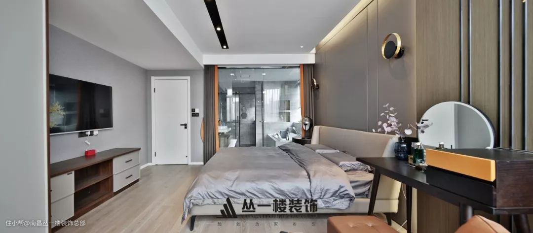 整体的材质和色调,还是希望充满温馨,柔软。主材也是更加容易选取的木饰面,金属,石材。